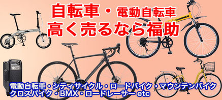 ロードバイク・ロードレーサー・マウンテンバイク(MTB)・ミニベロ(小径車)・ピストバイク・折畳み、BMX、リカンベント・シクロクロス・クロスバイク(CROSS BIKE)等・電動アシスト自転車・シティサイクル・の買取はリサイクルショップ 福助にお任せください。